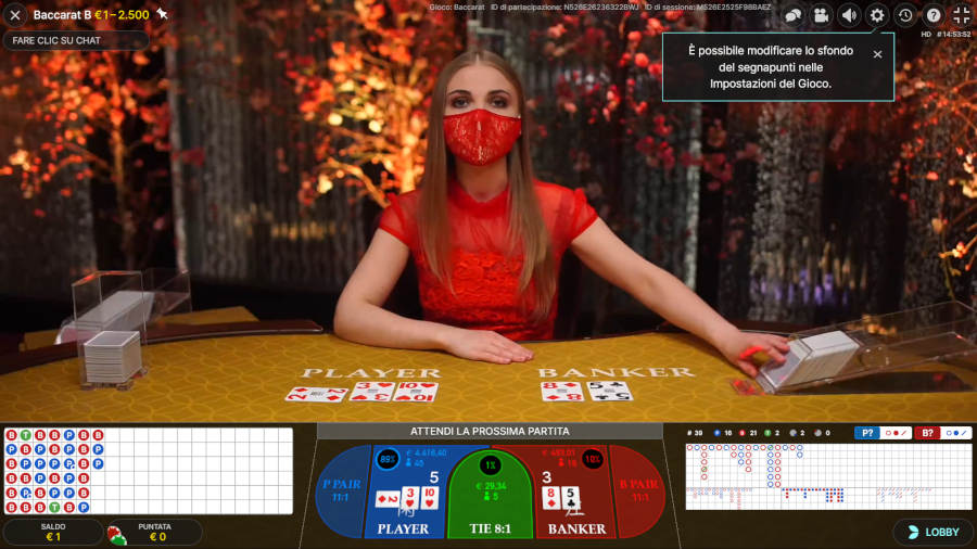 È forse una delle piattaforme più complete visto che dà la possibilità ai propri clienti di giocare al Live Baccarat anche da dispositivo mobile, proponendo un’applicazione disponibile sia per Android sia per ioS. Il software utilizzato porta la firma della Evolution Gaming. I giochi del Casinò dal vivo di questo sito sono fruibili in modalità online, senza la necessità di scaricare alcun software. Al momento, il suo palinsesto annovera soltanto due versioni del Baccarat con dealer dal vivo: Squeeze Baccarat e Baccarat Control Squeeze. I loro limiti minimi e massimi di giocata, sono rispettivamente di €1 – €1.000. Pertanto viene data la possibilità di divertirsi sia ai piccoli che ai grandi scommettitori. Entrambe le varianti presentano le stesse caratteristiche, in quanto sono disponibili ben 15-18 telecamere che riprendono ogni dettaglio del contesto di gioco. Le immagini sono in alta definizione (HD) e sarà lo scommettitore a decidere se utilizzare una risoluzione 2D oppure 3D. Cliccando sull’angolo della carta coperta su cui ha piazzato la giocata, l’utente ha la possibilità di rivelare il suo valore, producendo l’emozionante effetto dello Squeeze. Per ricevere assistenza, è possibile contattare tramite chat l’operatore oppure digitare il numero di rete fissa 06 2929 o il numero verde gratuito 800.900.009. In alternativa, si può anche inviare un’e-mail al loro indirizzo email. I giocatori possono effettuare il trasferimento dei fondi utilizzando i seguenti metodi di pagamento: MasterCard, Visa, Visa Electron, Postepay, PayPal, Maestro, Paysafecard, My Bank, Skrill-MoneyBookers, On Shop.