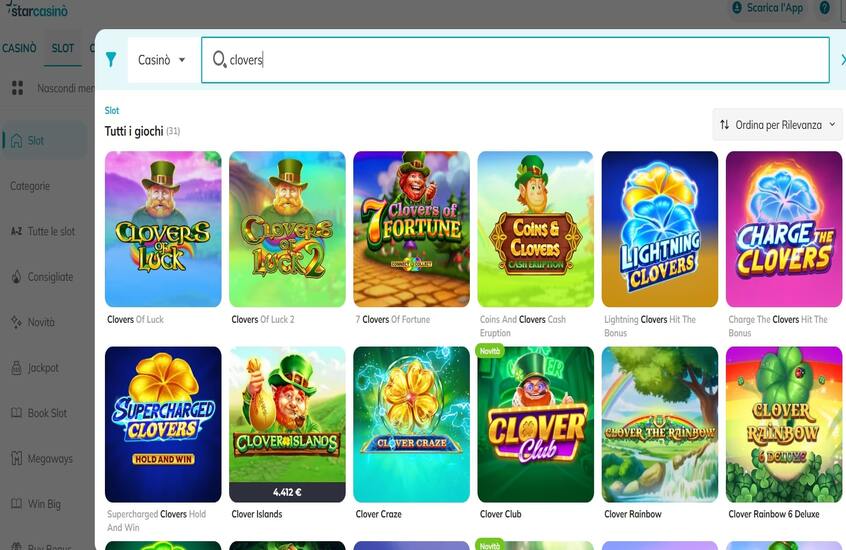 Nel settore online, invece, la disponibilità è ancora più ampia. La maggior parte dei casinò propone un assortimento che include svariate varianti basate sul simbolo fortunato, con differenti livelli di volatilità, meccaniche bonus e impostazioni di puntata. Tra le piattaforme che offrono una scelta particolarmente ricca spicca StarCasinò, nota per includere un numero elevato di titoli appartenenti a questo filone tematico. Come mostrato nell’immagine di riferimento, il portale mette a disposizione più di 30 giochi, permettendo ai clienti di esplorare numerose interpretazioni dello stesso concetto e di individuare la versione più vicina ai propri gusti.